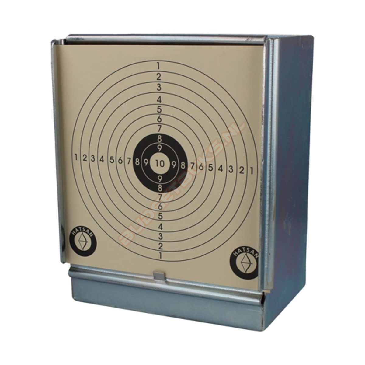 Hatsan kogelvanger 14×14 cm. Deze kogelvangers is erg solide en degelijk. Hij is namelijk gemaakt van 1,5 mm dik plaatstaal. Hierdoor is de Hatsan Pellet Catcher ook geschikt voor de sterkere knikloop luchtbuksen. Onder andere voorzien van ophangpunten aan de achterzijde. Dit product wordt geleverd inclusief 20 schietkaarten. Bestel nu!